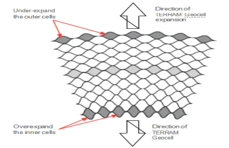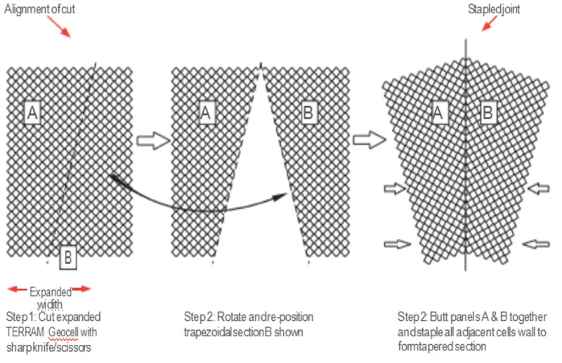 Field cutting of DK Geocell to form tapers and “L”-shapes