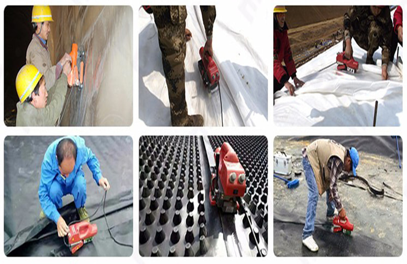Welding is necessary during Installation of geomembrane lining systems, which needs to be conducted by a professional welder. The two common welding techniques applied during geomembrane installation are: