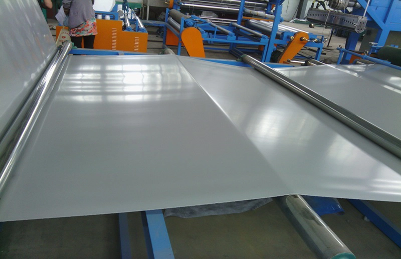 China PVC geomembrane is kind of high polymer material made of polyvinyl chloride resin adding plasticizer, UV resistance and anti-aging agent using extrusion technology.
