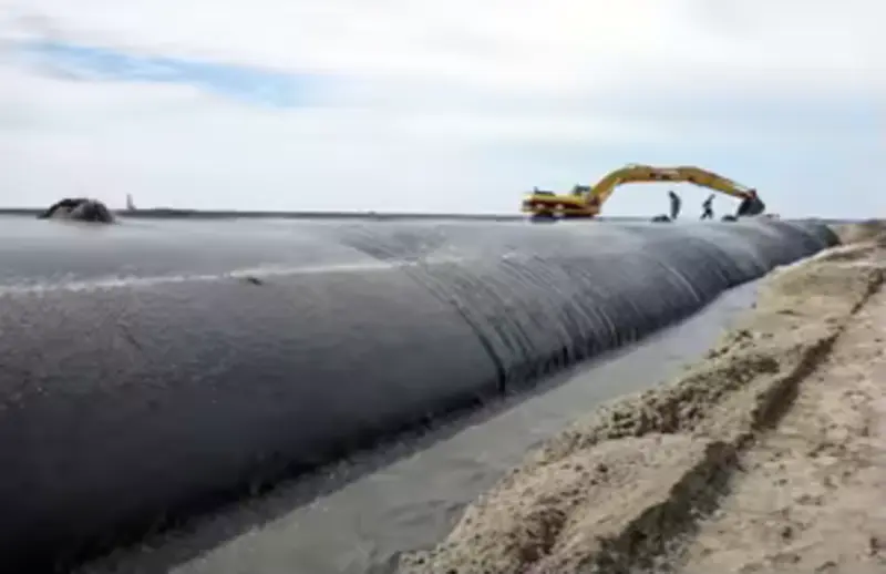 Geobag dewatering bags (also called geobags, dewatering tubes) are large, high-strength containers made from permeable geotextile fabrics. They are filled with slurry (e.g., sediment, sludge, or contaminated dredged materials) to separate solids from water through filtration and consolidation. Or filled with sand for coastal protection projects.