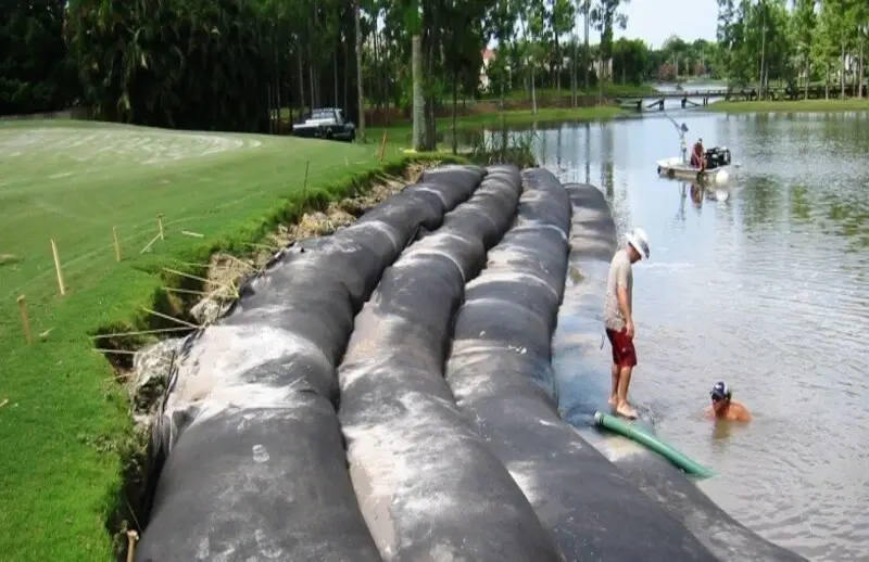Geobag erosion control (also called geobags, dewatering tubes) are large, high-strength containers made from permeable geotextile fabrics. They are filled with slurry (e.g., sediment, sludge, or contaminated dredged materials) to separate solids from water through filtration and consolidation. Or filled with sand for coastal protection projects.