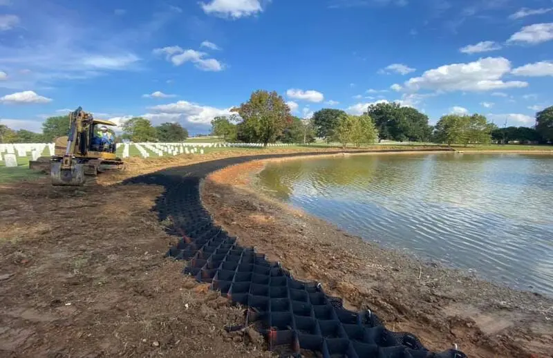 Stabilizes dam embankments and reservoir slopes under hydraulic pressure.