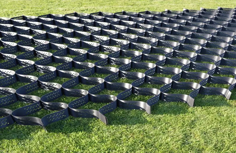 3D Confinement: The unique cellular structure provides all-around confinement for the infill material, preventing lateral movement and displacement under load. This creates a rigid mat that distributes loads over a wider area.