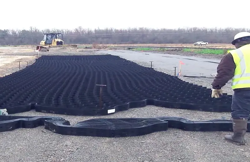 3D Confinement: Locks infill in place, creating a rigid yet permeable mat that distributes loads evenly.