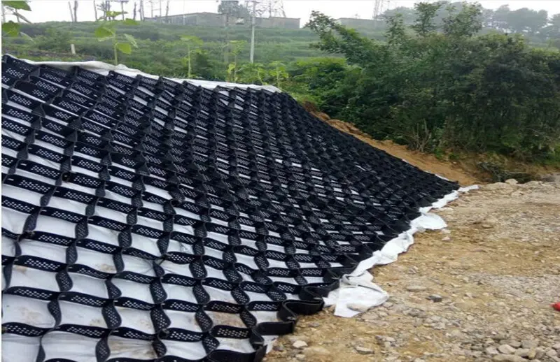 Geocell Pavers is a mesh cell structure formed by high-strength HDPE wide bands through strong welding or riveting. It is flexible and can be folded up during transportation. It can be opened and filled with soil, stone or concrete when in use, forming a structure with strong lateral restrictions and high rigidity. It can be used as a cushion layer to treat weak foundations and increase the bearing capacity of the foundation. It can also be laid on the slope to form a slope protection structure, and can also be used to build retaining structures, etc.