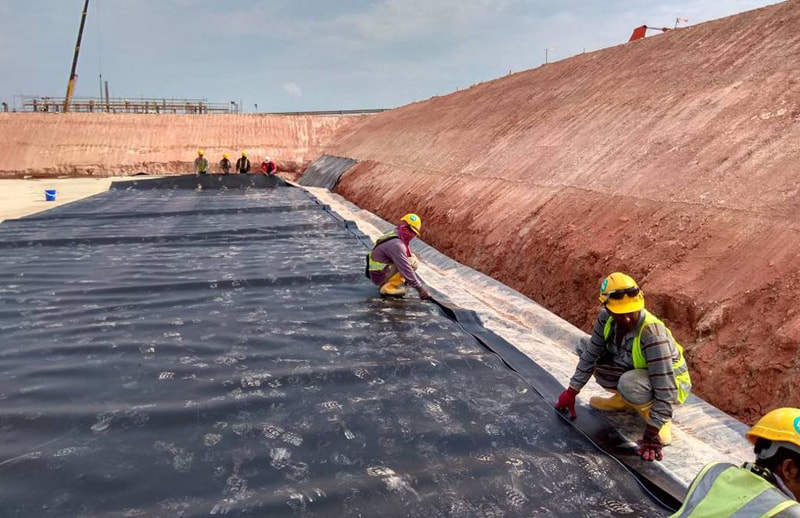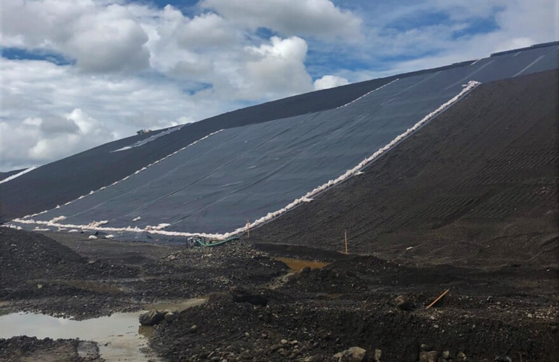 Mining Applications: In mining, geomembranes serve asliners for heap leach pads, tailings storage, and acid drainage containment, ensuring environmental protection and operational efficiency. Heap Leach Pads Used in gold, copper, and uranium extraction. Prevents leaching solutions from contaminating groundwater. Tailings Storage Facilities (TSF) Lines ponds holding mining waste (tailings), preventing toxic seepage. Reduces risk of dam failures and environmental disasters. Acid Mine Drainage (AMD) Control Blocks sulfide minerals from reacting with water, reducing acidic runoff. Often paired with geotextiles for added protection.