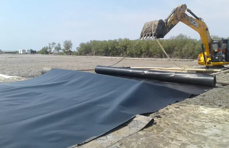 Geomembrane Pond Liner is a very low permeability synthetic membrane liner or barrier used with any geotechnical related material to control the migration of fluids (liquids or gases) in man-made items, structures or systems. Geomembrane containment liners consist of synthetic materials engineered to form impervious layers in ponds or reservoirs, thereby preventing water from escaping through seepage. Typically manufactured from robust materials such as high-density polyethylene (HDPE), polyvinyl chloride (PVC), or ethylene propylene diene terpolymer (EPDM), these liners offer both high durability and exceptional impermeability.