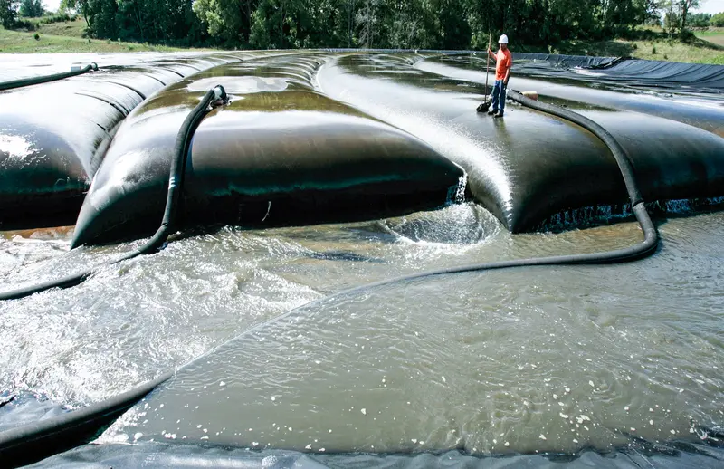 Geotextile dewatering bags technology can dehydrate the bottom mud gathered in river, bays seaports, wharves, ports and docks to project the environment. Creates barriers for sediment control.